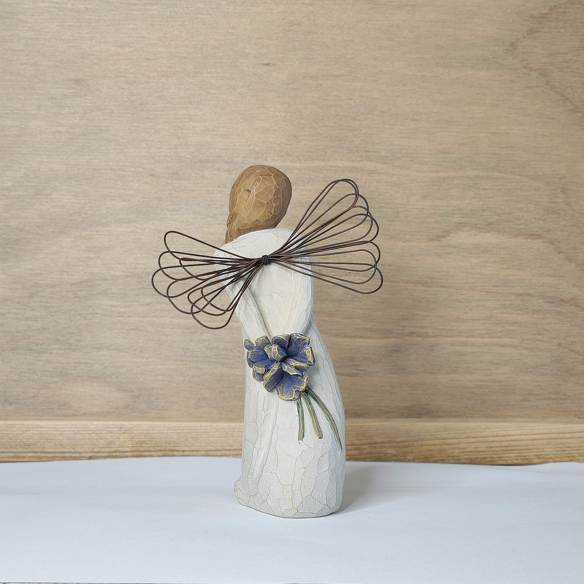 This decorative angel figurine is crafted with beautiful detail, featuring a bouquet of flowers in its hands. Its sweet touch is sure to bring some warmth and peace to your living space.