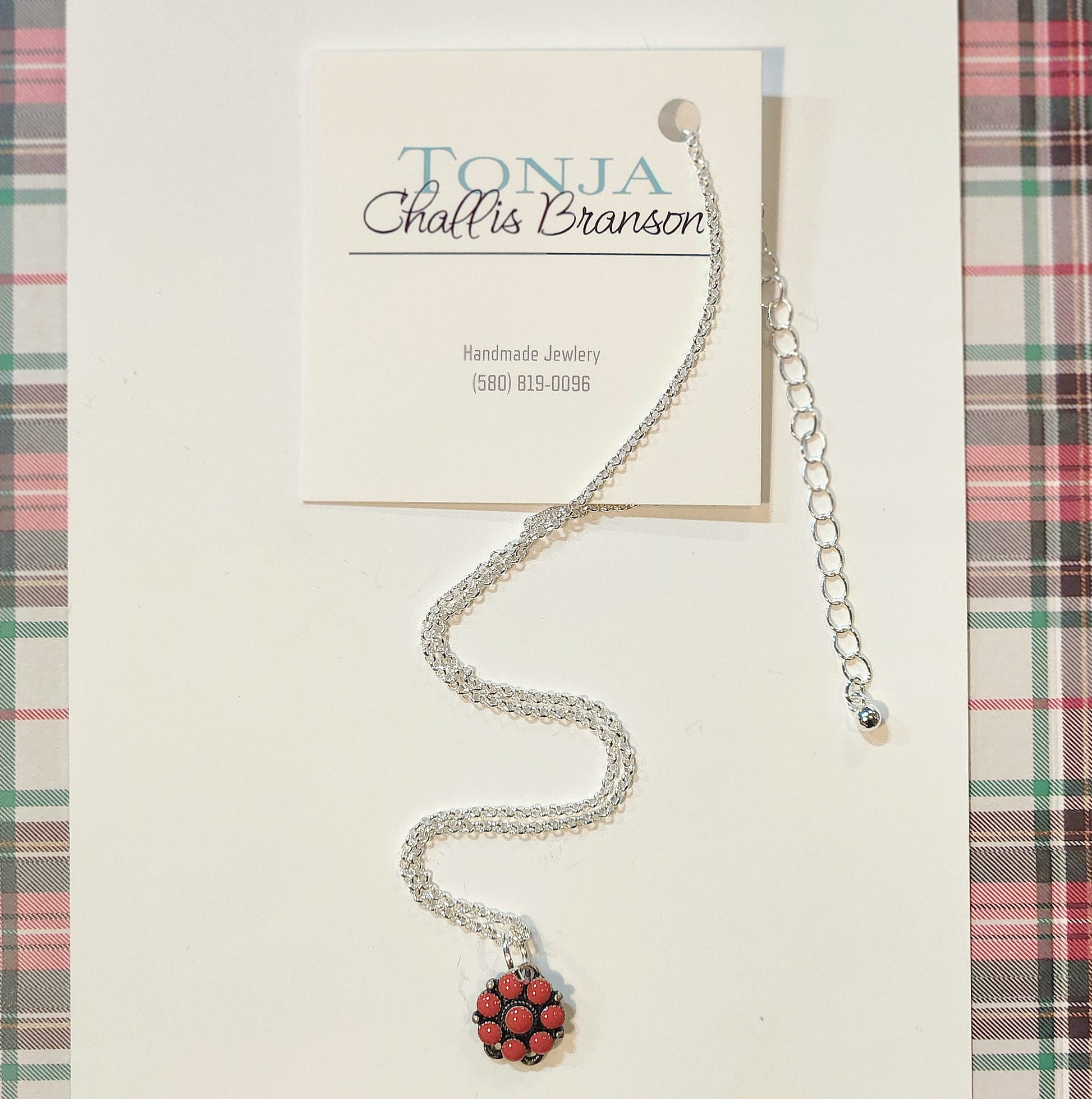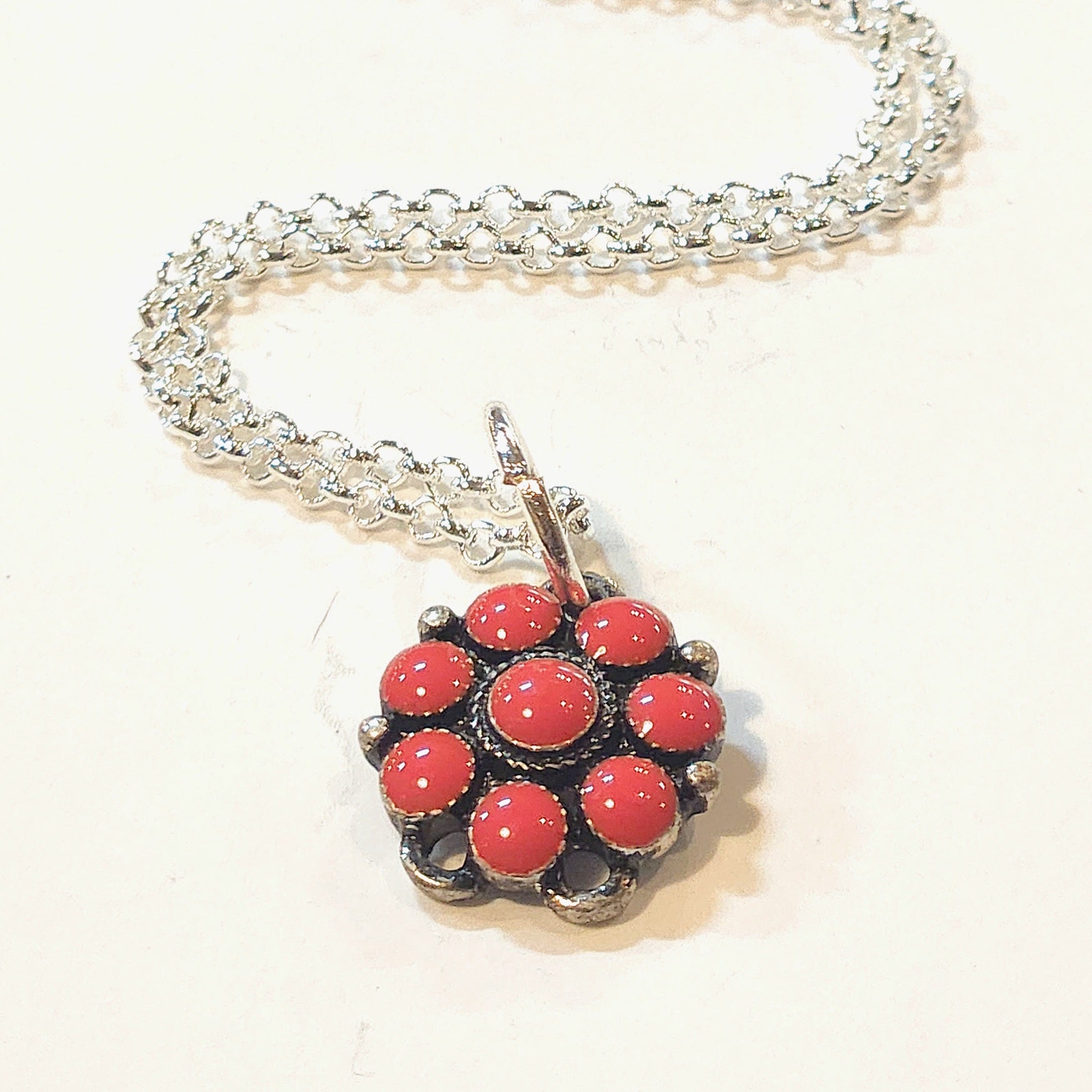 Red Stone Flower Shield Necklace 19"